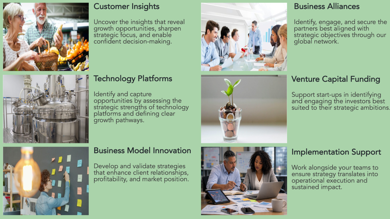 We help organizations leverage their scientific and technological capabilities to develop innovative, functional ingredients, access new markets, and align their portfolios with evolving industry and consumer demands.
